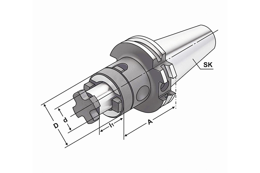 Zur Aufnahme von Walzen-, Walzenstirnfräsern oder Messerköpfen mit Längs- oder Quernut.