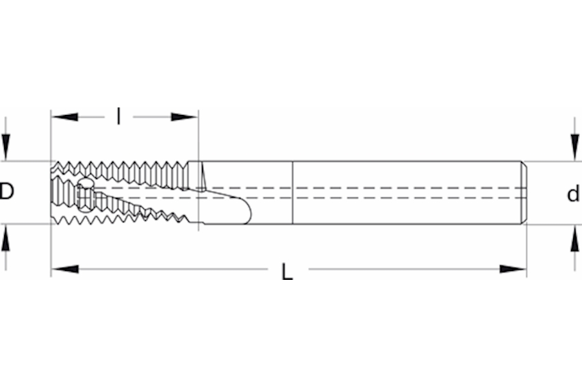 Gewindefräsen und Entgraten in einem Arbeitsgang. Für alle Stahlsorten geeignet. Toleranz: D 1.0 - D 7.0 +0/-0.050 - / D8.0 - 25.0 +0/-0.075