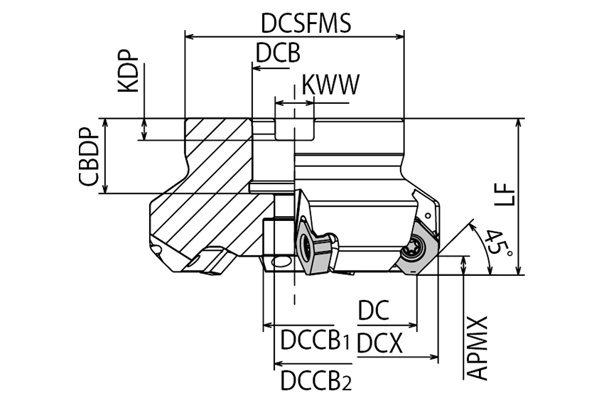 MB45 Fraise à surfacer 45°